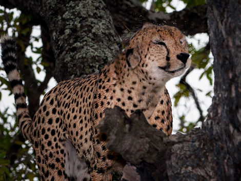 Sie sind die schnellsten Katzen bei der Jagd und wir können uns glücklich schätzen, schon erfolgreiche Jagdszenen einer Mutter mit ihren Kids beobachtet zu haben. Beeindruckt hat uns das Beobachten des Markierens des Territoriums eines Männchens, sowie das leise Miauen der gefleckten Katzen mit den tränenden Augen. Besonders faszinierend sind Begegnungen mit den pelzigen Jungtieren, deren Fell die Gestalt eines Dachses imitiert.